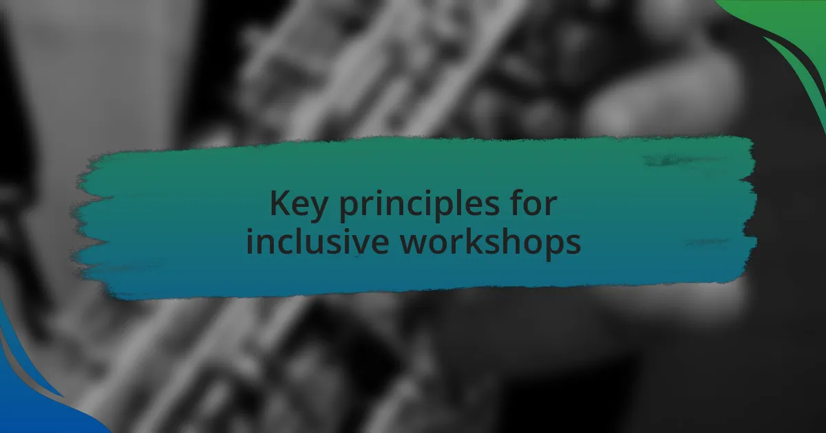 Creating inclusive workshops revolves around a few key principles that foster connection and participation. One principle I prioritize is creating a safe space. I once facilitated a workshop where I asked attendees to share their thoughts without fear of judgment. The room transformed as participants began to voice their ideas freely, and I could feel the energy shift. Isn’t it incredible how a supportive environment can unlock hidden insights from even the most reserved individuals?