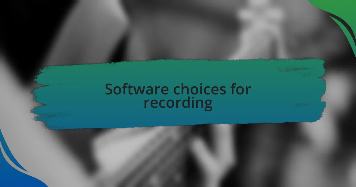 When it comes to software choices for recording, I’ve explored various digital audio workstations (DAWs) to find what complements my creative flow. My journey began with something simple, like Audacity, which was great for learning the basics of recording and editing. However, I soon realized that I craved more depth. So, I shifted to Ableton Live, and it felt like unlocking a new level of creativity—everything from its intuitive interface to powerful MIDI capabilities truly resonated with me. Have you ever experienced that exhilarating moment when the right tool sparks your inspiration?
