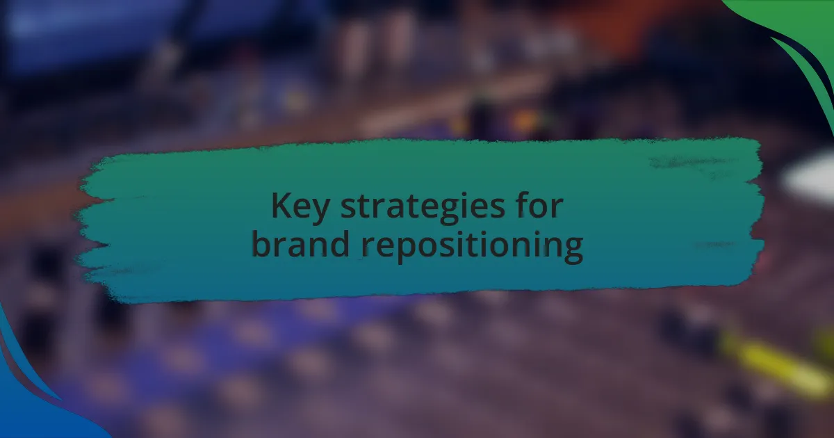 When it comes to brand repositioning, one critical strategy is conducting thorough market research. In my experience, diving deep into customers’ perceptions and needs can unveil insights that transform a brand’s direction. I remember working with a music conference where surveys revealed attendees wanted more interactive sessions rather than passive lectures. By adjusting our program, we not only enhanced engagement but also fostered a sense of community among participants. Isn’t it fascinating how understanding your audience can spark such profound changes?