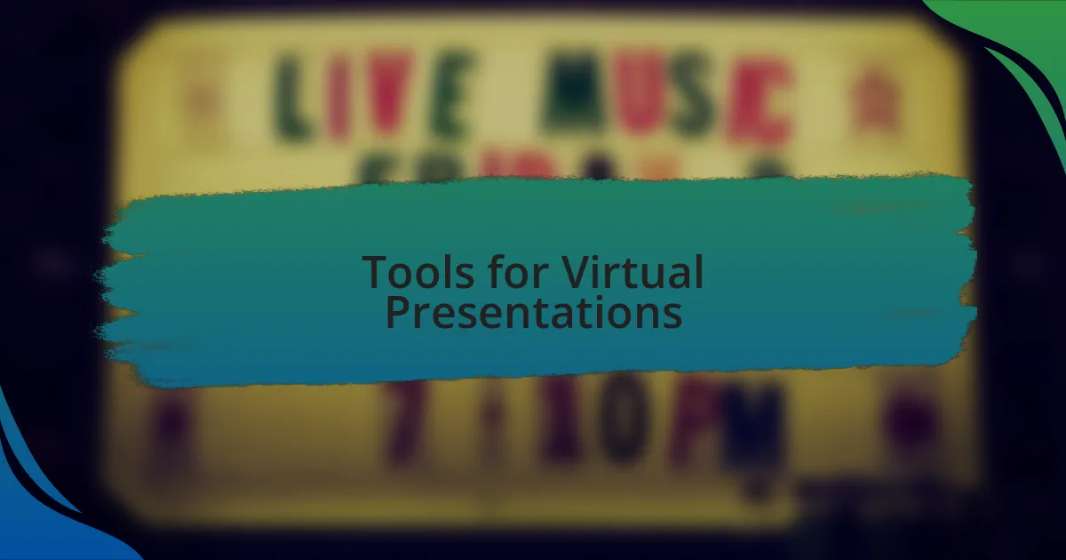 When it comes to tools for virtual presentations, I’ve found that software like Zoom and Microsoft Teams reign supreme. During a recent conference, I used Zoom’s breakout rooms to facilitate smaller group discussions. It was incredible to watch participants engage more deeply in these intimate settings. Have you ever experienced a moment when the conversation just flows better in a small group?