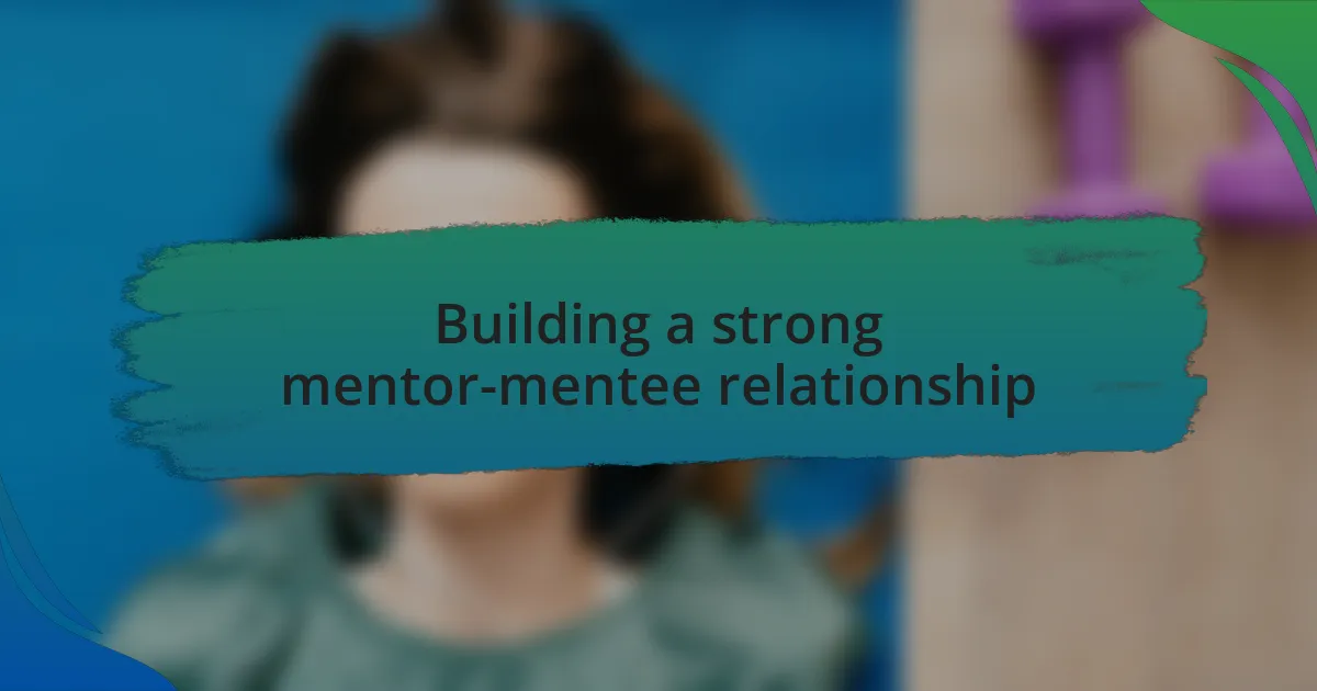 Building a strong mentor-mentee relationship starts with open communication. I vividly recall a time when my mentor encouraged me to express my thoughts and concerns without hesitation. That safe space led to deep discussions about my artistic vision, making me feel valued and understood. Have you ever had those conversations where you truly felt heard? It’s that sense of trust that strengthens the bond between a mentor and mentee.